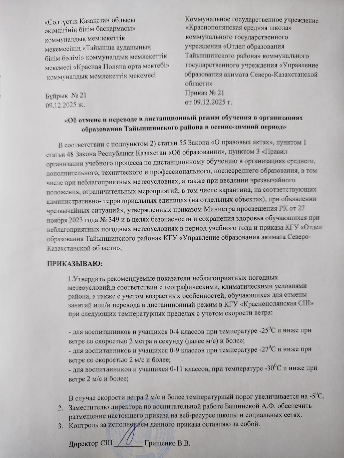 Приказ об отмене занятий и переводе в дистанционный режим в осенне-зимний период Автор admin Чтение мин Число просмотров 46 Опубликовано 09/12/2025